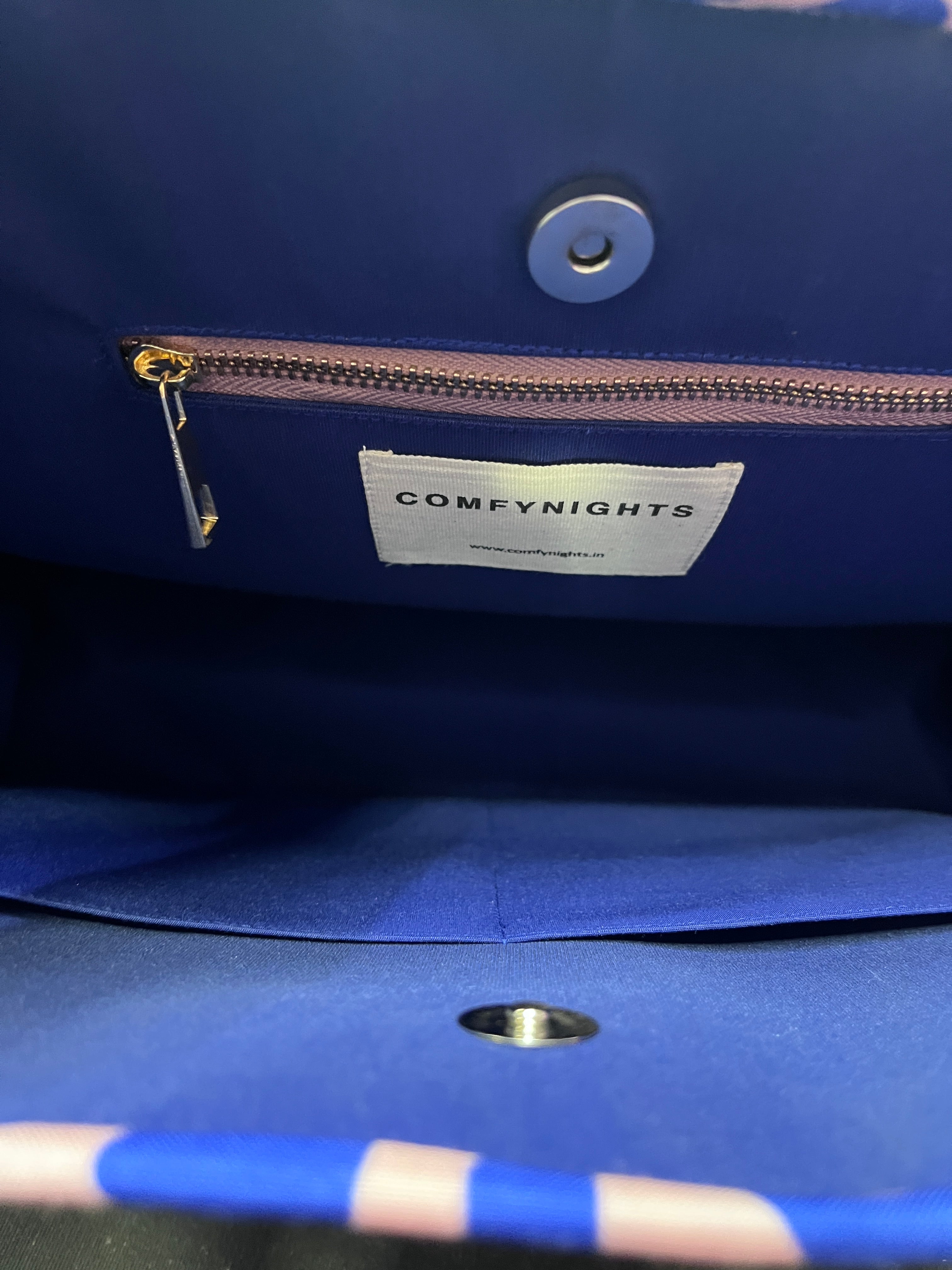 Tote Bag Soft Cotton Blend with two handles at the top and a zipped inner compartment & 2 Pocket compartment. Cotton Lined.