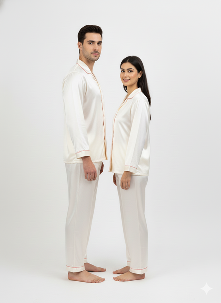 White Satin Couple Set | Prepaid Orders Only – Comfy Nights